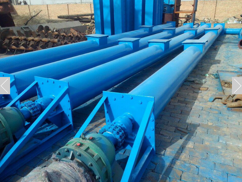 螺旋管输送机是在圆筒形机壳内焊有连续的螺旋叶片,机壳与螺旋叶片一起转动。加入的物料由于离心力和摩擦力的作用随机壳一起转动并被提升后,在物料的重力作用下又沿螺旋面下滑,使物料随螺旋管一起旋转从而实现了物料的向前移动,如同不旋转的螺杆沿着转动的螺母作平移运动一样,达到输送物料的目的。