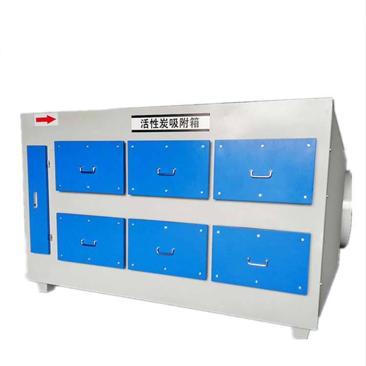 ①.活性炭吸附单元在设备箱体内分层抽屉式安装,能够非常方便从两侧的检查门取出。
